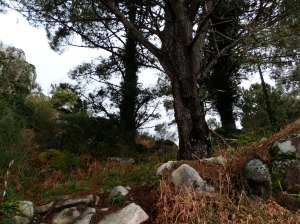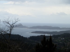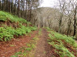 Sigue la caminata entre parcelas y casas aisladas para continuar por el parque forestal de A Pedra Cabalgada desde donde no tardamos el dar con el IES de Monte Carrasco que señala el comienzo de A Serra da da Madalena en la que destacan sus espléndidos miradores sobre las rías de Arousa, Aldán y la Ría deVigo.