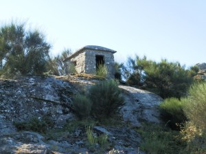 Culmina la cima de ese mirador, también conocido como Alto de San Martiño, una caseta construida con mampostería de granito y cubierta del mismo material que constituye un estupendo refugio para cazadores, pastores o quien quiera que sea que necesite cobijo en el que guarecerse.