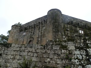 Dejando atrás el casco urbano, ascendemos hasta la capilla de San Pedro y desde allí , después de un par de km. damos con el pórtico de entrada al parque del Castillo del Sobroso que se alza sobre la colina que domina el valle. Es lunes y está cerrado al público. Está lloviendo y poco se ve de las tierras que lo circundan.