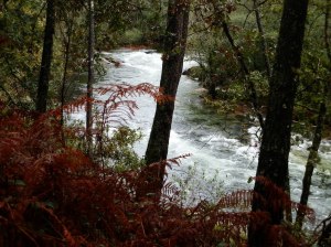 Desde el castro bajamos por corredoiras y algo de carretera hasta la orilla derecha del Tea por cuya senda caminamos a lo largo de unos cinco kilómetros disfrutand0 de los hermosos parajes que nos ofrece el río que, después de las recientes lluvias , ha recuperado su caudal y fluye espléndido y potente hacia su encuentro con el Miño.