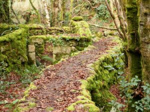 También la mano del obra aportó su contribución a la hermosura de estos parajes con los muiños, corredoiras y carreiriños que acompañan al río en su precipitado descenso, jalonado por el intenso verde que tapiza muros, troncos y rocas que, a pesar de la desnudez con que el invierno ha castigado a los caducifolios, brillan con esplendidez en contraste con la blanca espuma de las hirvientes aguas que, entre cascadas, saltos y remansos, configuran un escenario de extraordinaria belleza.
