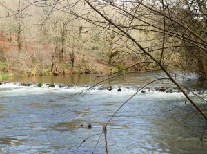 Río arriba fluye el Tea hermoso y exultante, pleno de vida y vigor, sereno en sus remansos, agitado en los rápidos que se forman en su accidentado cauce o tras las represas, como la de los Pasos de Tatín casi cubiertos por las crecidas aguas en este tiempo de lluvia.