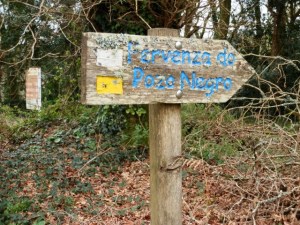No tardamos mucho en cruzar O Rego de Chavielos que, poco antes de entregar sus aguas al Tambre, forma una espléndida cascada conocida como A Fervenza do Pozo Negro, regalándonos la hermosa estampa de su amplia melena de blanca espuma, precipitándose con vigor en el citado Pozo Negro.
