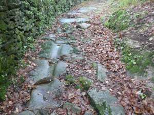 Dejando atrás el Río dos Castros, que discurre un poco más bajo de la citada iglesia, ascendemos por un tramo de la Ruta de Frei Sarmiento, una antigua conocida de los andarines de este grupo, bastante descuidada en la actualidad, como suele suceder.